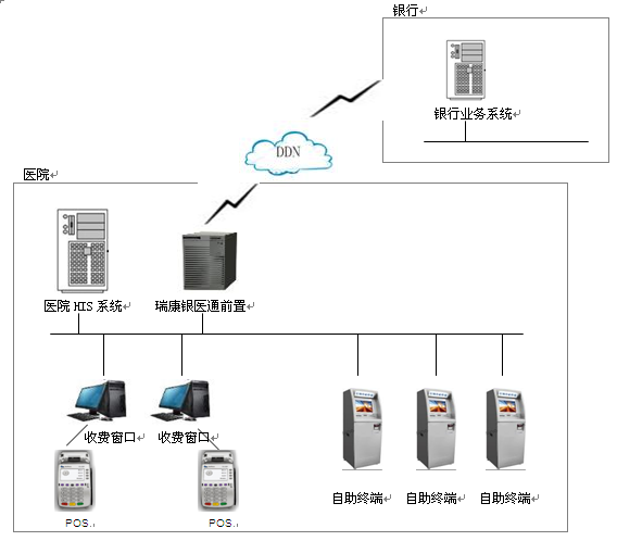 為了滿足各大醫(yī)院日益增長(zhǎng)的繳費(fèi)需求,緩解醫(yī)院排隊(duì)繳費(fèi)困境,南京瑞康資訊有限公司提出銀醫(yī)通系統(tǒng)的解決方案,在本方案中銀醫(yī)通包括兩個(gè)部分,一部分是窗口銀行卡收費(fèi),一部分是自助終端銀行卡支付。
